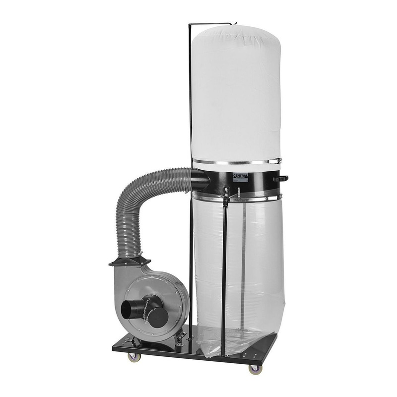 The CENTRAL MACHINERY 35 Gallon, 2 HP High-Flow High-Capacity Dust Collector has an extra-large collection bag for cleaning up big shop projects. The unit moves easily on four swivel casters so that it can be used with multiple machines. The lower collecti