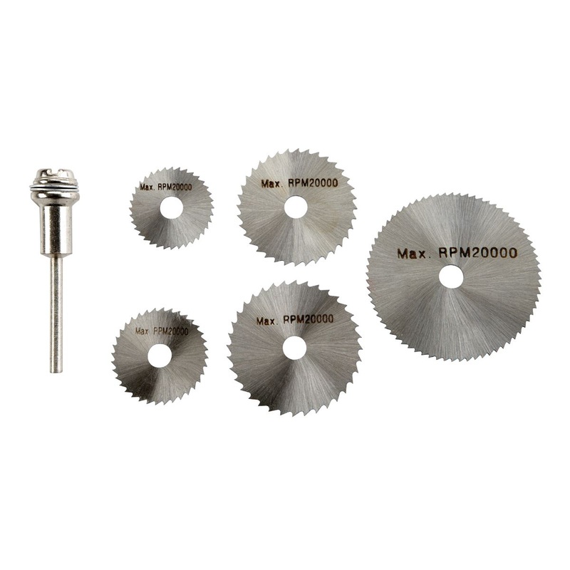 This saw blade and mandrel set is ideal for precision cuts in aluminum, brass, copper, wood and plastic. Each saw blade is constructed of high speed steel for ultimate durability.