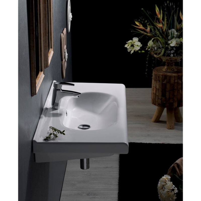 Contemporary design in a rectangular shape, this sleek sink can be wall mounted. With options for a single or three faucet hole setup and included overflow, it can quickly and easily be installed to complete your modern styled bathroom.Rectangle white cera