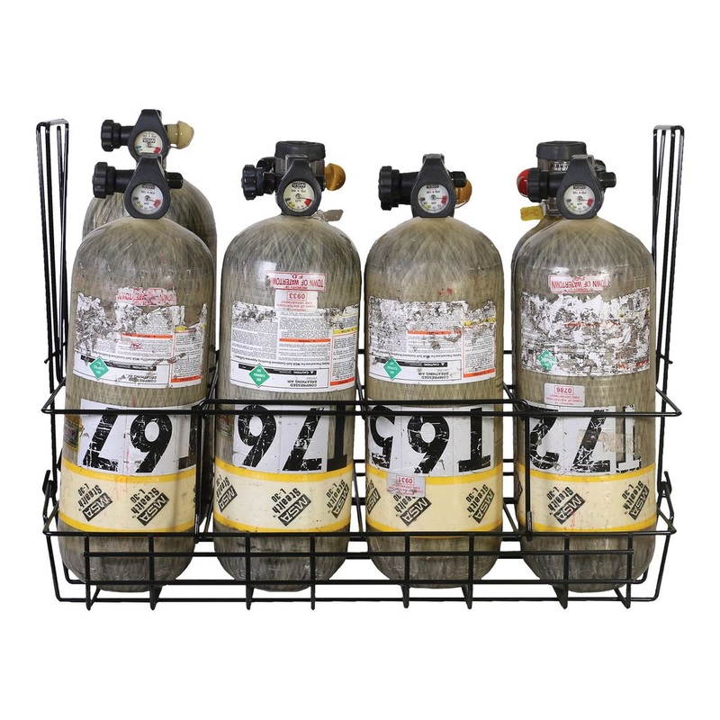 Transport or store bottles in this convenient bottle carrier.Heavy-duty reinforced steel construction with a nylon coatingHolds up to (8) cylinders of 45-minute and 60-minute bottlesStays up even when emptyShips knocked down for freight savingsWeight12.2 l