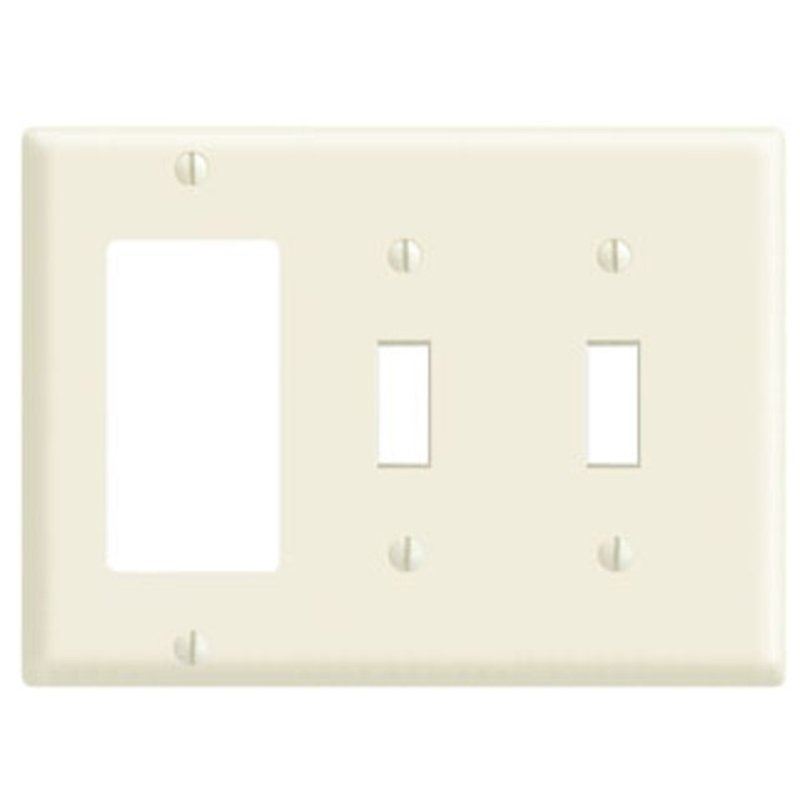 3-Gang, 2-Toggle 1-Decora/GFCI Device Combination Wallplate, Standard Size, Thermoplastic Nylon, Device Mount – Ivory.