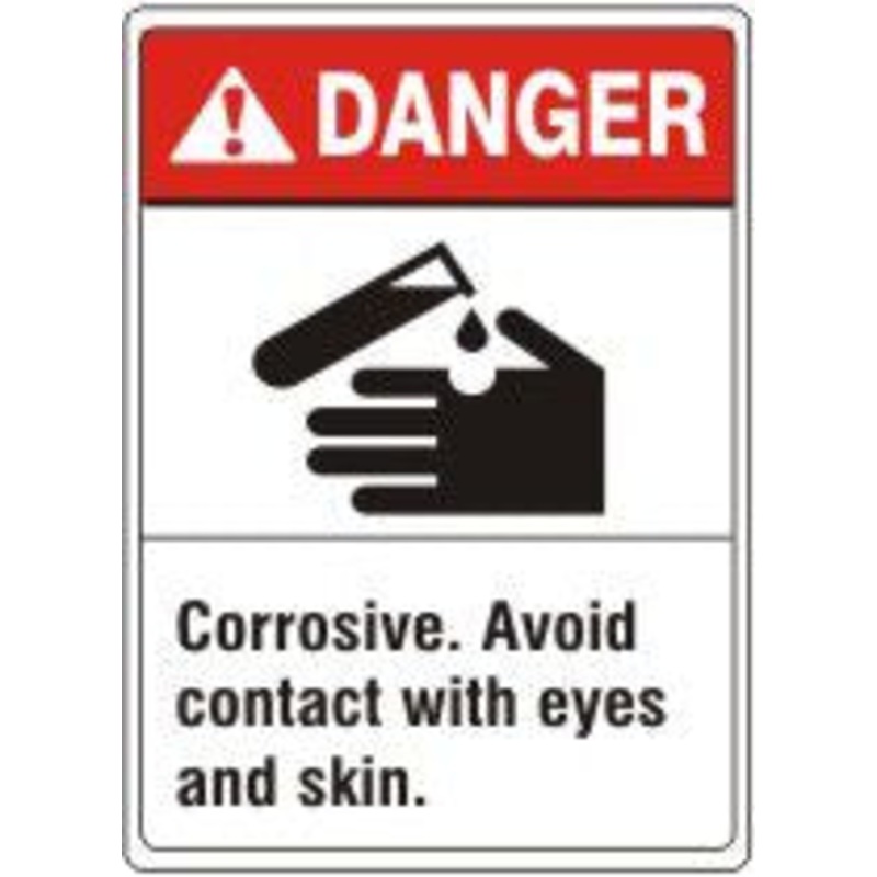 Danger Corrosive. Avoid Contact With Eyes And Skin. Sign With Corrosive Material And Hand Picto, Fiberglass, Red/Black/White, 14×10″