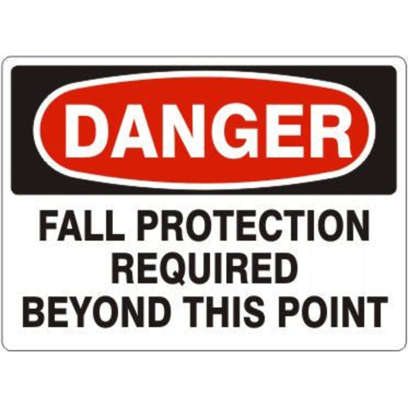 Danger Fall Protection Required Beyond This Point Sign, Plastic .040, Red/Black/White, 10x14\
