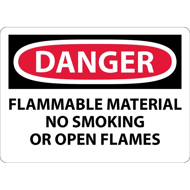 OPERATIONAL HAZARD Danger FLAMMABLE MATERIAL NO SMOKING OR OPEN FLAMES Safety Sign, ALUMINUM .040, 10 X 14