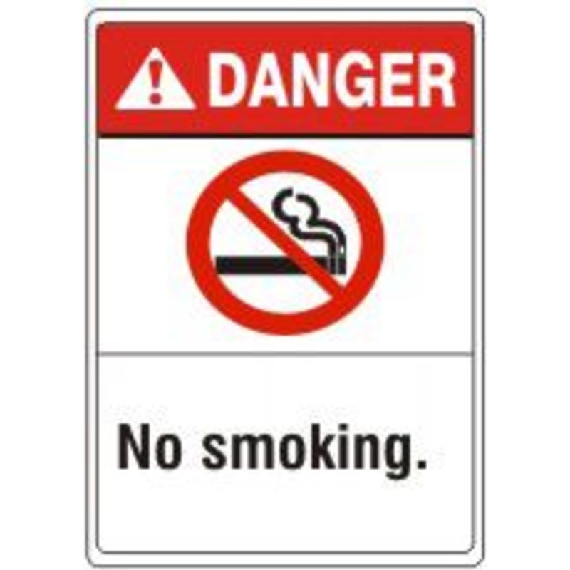 Danger No Smoking. Label With Smoking Picto, Adhesive Vinyl, Red/Black/White, 14x10"