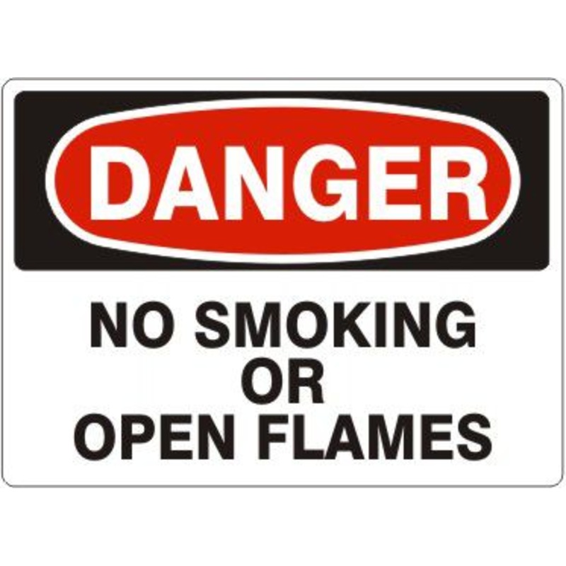 Danger No Smoking Or Open Flames Label, Adhesive Vinyl, Red/Black/White, 14x20"