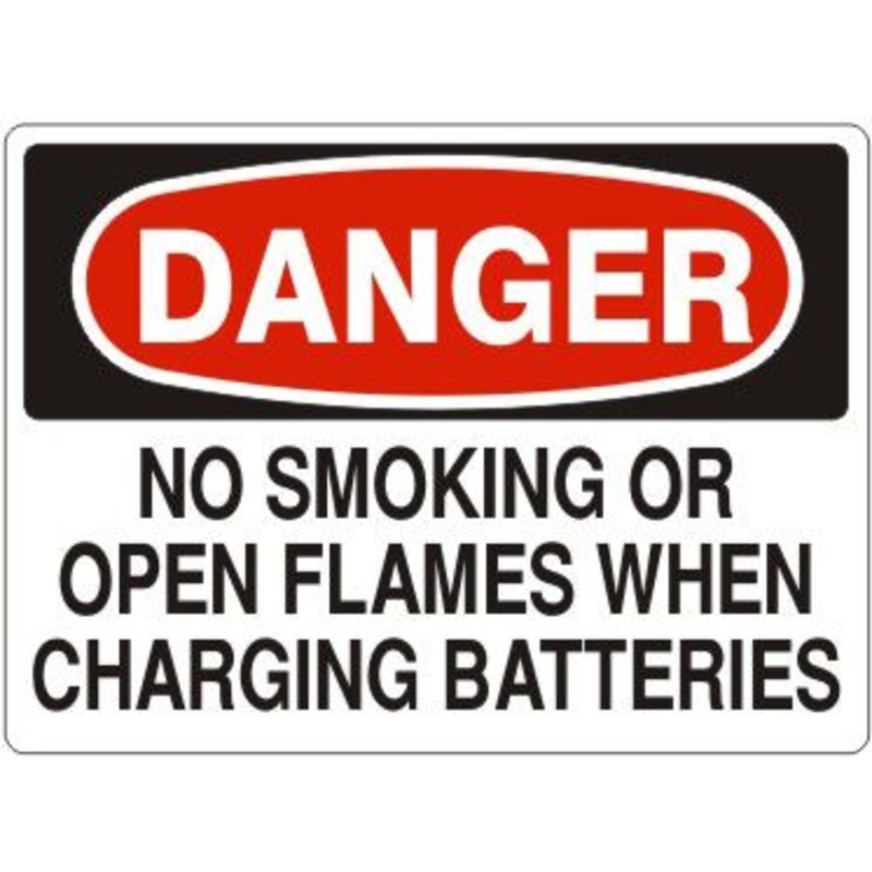 Danger No Smoking Or Open Flames When Charging Batteries Label, Adhesive Vinyl, Red/Black/White, 3×5″
