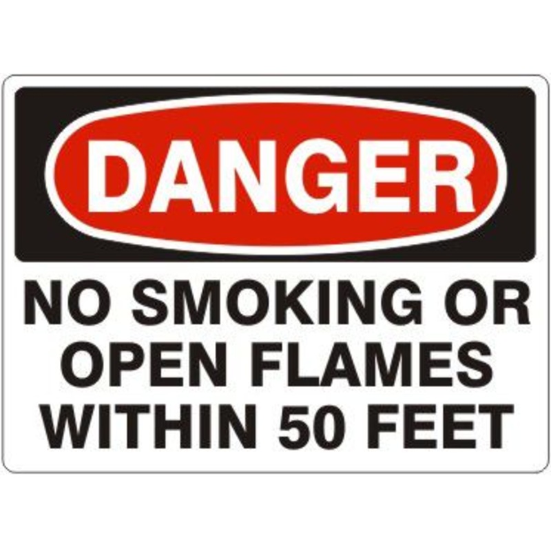 Danger No Smoking Or Open Flames Within 50 Ft Sign, Aluminum .040, Red/Black/White, 7x10\