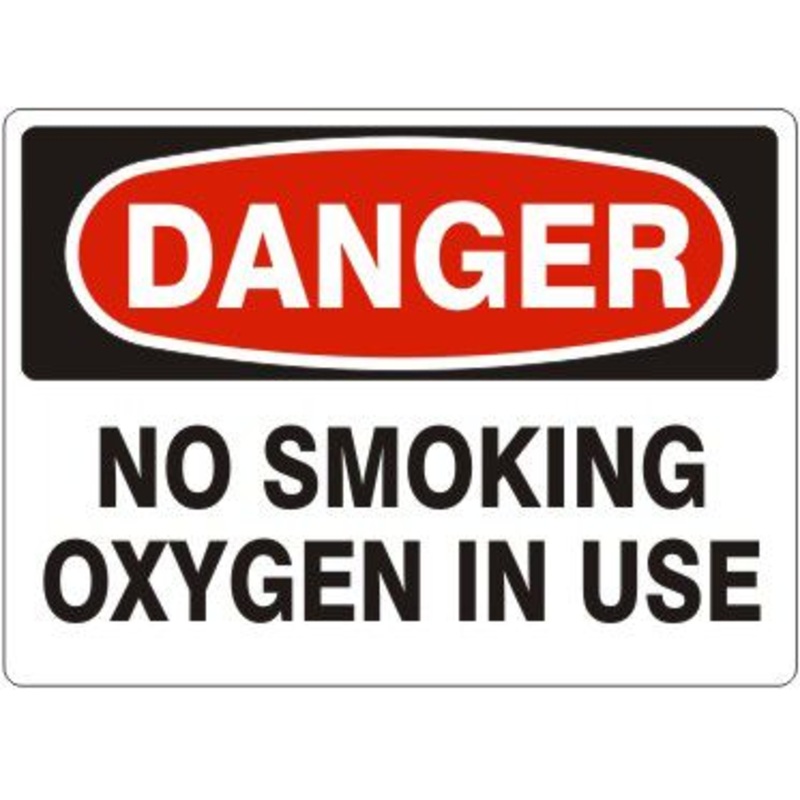 Danger No Smoking Oxygen In Use Label, Adhesive Vinyl, Red/Black/White, 14x20"