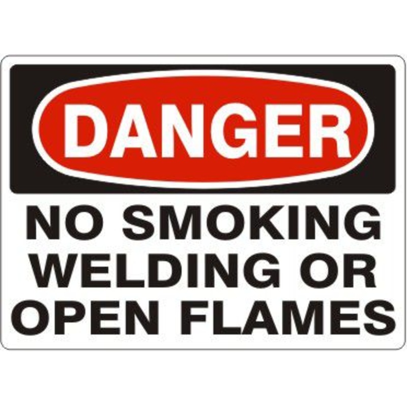 Danger No Smoking Welding Or Open Flames Label, Adhesive Vinyl, Red/Black/White, 7×10″
