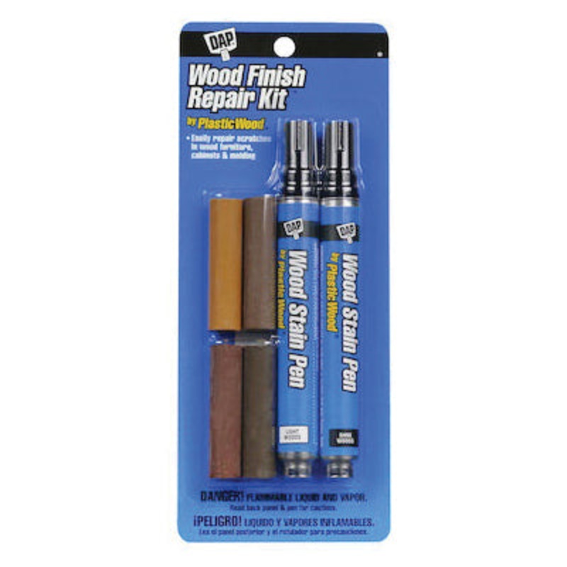 DAP Wood Finish Repair Kit, Liquid Form, Odor/Scent: Solvent Like, 65 to 90 deg F, Density: -9999 g/cc, Applicable Materials: Wood, Additional Information: 8.88 in L x 3.88 in W x 4.75 in H Dimensions, 24 months Shelf Life