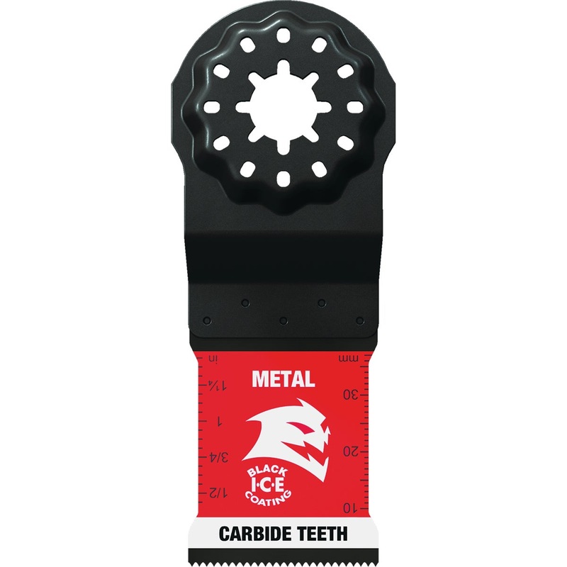 Starlock carbide oscillating blades feature application specific designs that deliver extreme durability and superior cutting life in general purpose cuts: nail-embedded wood, clean wood, metal and plastics. High-performance carbide teeth deliver an unmatched up to 50X longer cutting life versus standard bi-metal blades. Curve contact edge creates a pilot for precise, clean plunge cuts with less vibration. An optimized blade design and Black I.C.E. (Industrial Cooling Element) keeps the teeth cool and build up free for fast, clean cuts. Tool free quick-change interface fits Fein and other Starlock tools; also compatible with non-Starlock multi-tools.