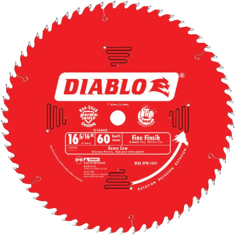 Diablo's Fine Finish Saw Blades for Wood are designed for large capacity beam, post and timber cutting. 16-5/16-Inch Beam Saw Blade is ideal for timber framing such as LVL, Gleams and Parlays. Cuts up to 6 1/4-Inch at 9 Degrees and 4 3/16-Inch at 45 Degree