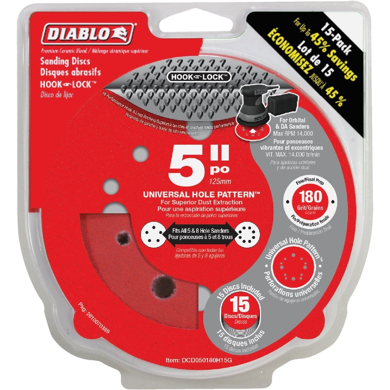 Diablo 5 In. 180-Grit Universal 5-Hole Hook and Lock Vented Sanding Disc (15-Pack)