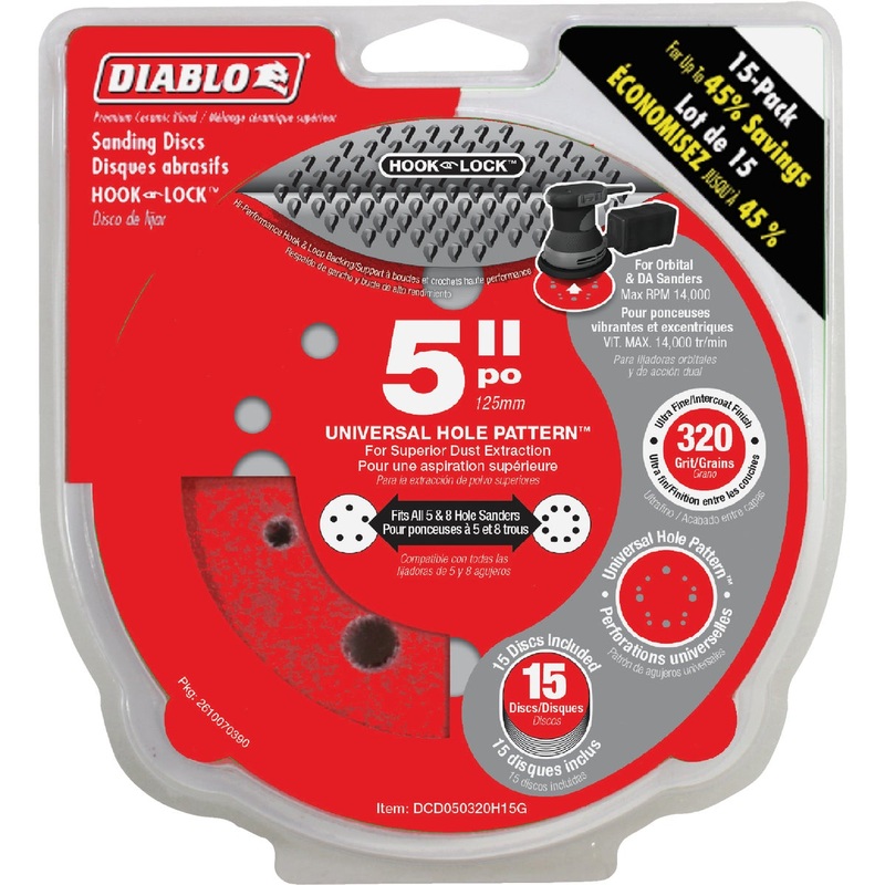 Premium universal 12-hole ROS (random orbital sanding) discs with Hook & Lock backing include break-through innovations that improve performance, extend sanding life and increase productivity. Featuring a premium ceramic blend, these discs remove material faster than other sanding discs and offer an extra long sanding life. Clog-SHIELD grinding agent reduces loading, thus maximizing productivity. The superior grain bonding system, ENDURA-BOND provides these discs with longer life and extreme durability. Fits all 5 and 8 hole sanders.