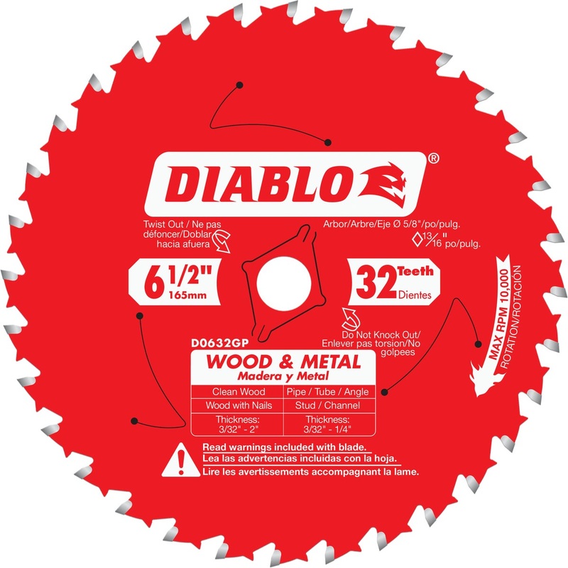 Diablo's innovative Carbide Saw Blade for Wood and Metal is the industry's first multi-purpose saw blade for cutting clean wood and wood with nails, up to 2" material thickness; and metal ranging from 3/32"-1/4" wall thickness and 1/4"-1" diameter. The ver