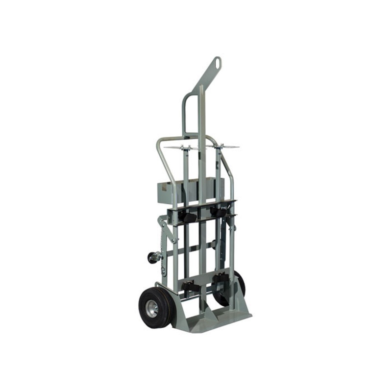 Move gas cylinders easily around a construction site, into locations with poor accessibility, or from floor to floor with these hoist-equipped hand trucks. Designed for a pair of cylinders (usually oxy-acetylene) common in welding applications, up to 13-in