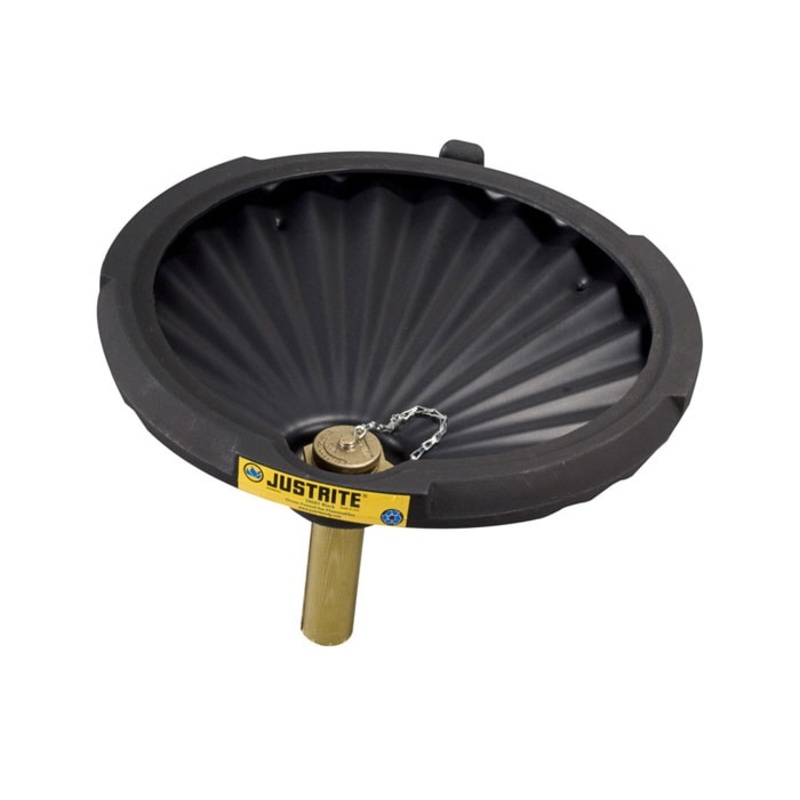 Use these funnels with any closed-head 30- and 55-gallon (110- and 200-L) drums. Low-profile, wide diameter opening makes it for quick, easy pouring. Scalloped, sloped design minimizes splashes and prevents containers from resting in their own liquids. Lar