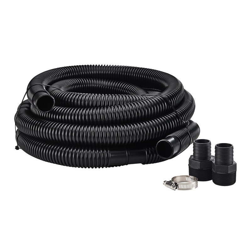 The DRUMMOND 1-1/4 in. x 24 ft. Sump Pump Discharge Hose Kit comes with everything for fast, easy installation. The heavy duty hose has a larger inside diameter for faster flow. Designed for sump pumps and utility pumps.
