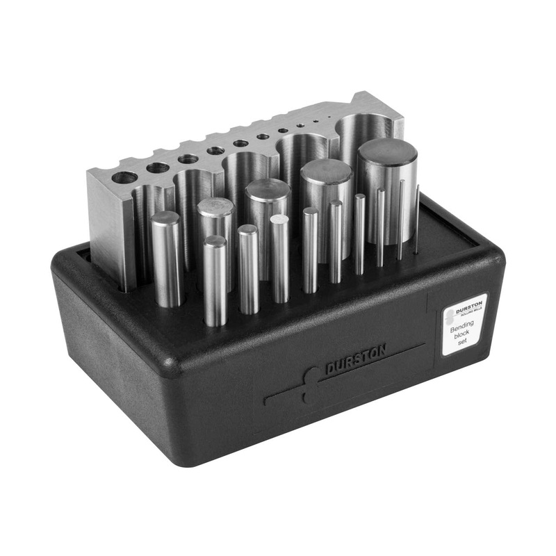 Bending Block Set from Durston Tools. A highly polished hardened steel bending block for forging and bending. The set comes complete with bending block and hardened rods. The set includes a total of 15 half rounds.A highly polished hardened steel bending b