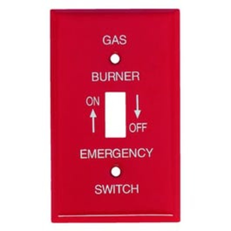 Red, 1 Gang, Single Toggle, Emergency Gas Burner On/Off, Wall Plate, UL Listed, Bulk Cello Wrap.