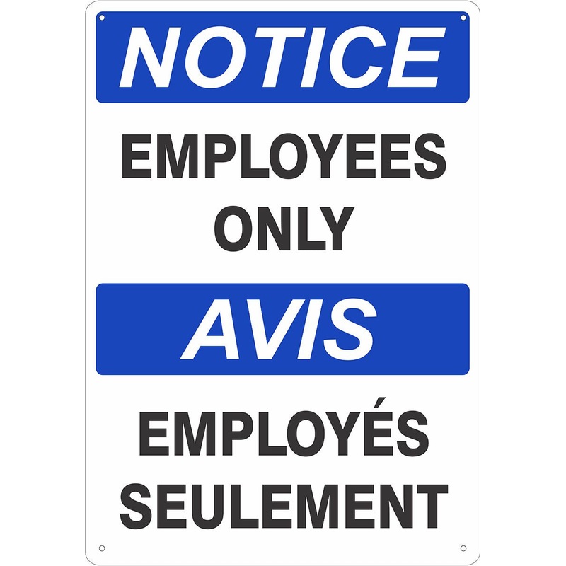Employees Only Avis Employs Seulement – Notice Sign ,Plastic (.040) ,20X14