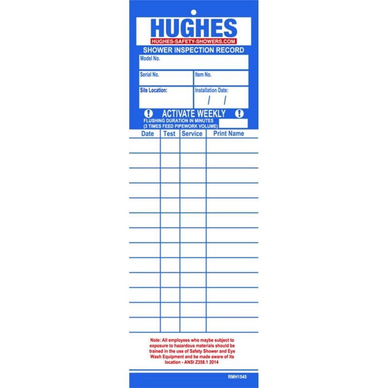 Most Justrite shower and eye/facewashes come with an inspection record and holder, which can be attached to the shower or positioned close by where it can be readily available. When the tag is full, simply remove it from the holder and replace with a new inspection record. As a best practice, completed tags should be kept as a record of testing and servicing.