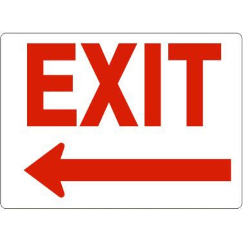 Exit Left Arrow Sign, Plastic .040, Red/White, 10×14\