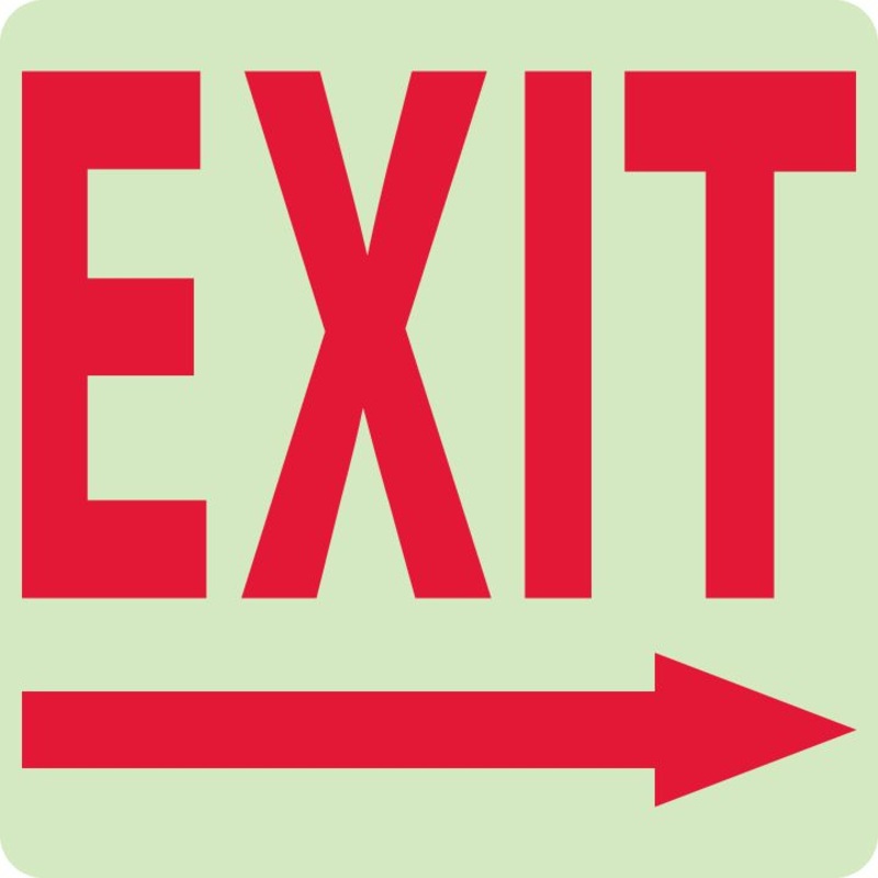 EXIT EXIT EXIT (WITH RIGHT ARROW) Safety Sign, GLOW RIGID (7520), 10 X 10