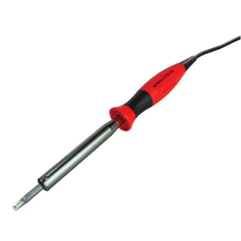 The Faithfull Power Plus SI80W Soldering Iron is fitted with heat-resistant handle, suitable for soft soldering metal alloys, brass and copper. The working temperature is reached quickly and a metal holder is supplied to keep the hot iron safely at rest wh