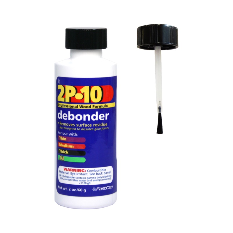 2P-10 Debonder helps you clean up excess 2P-10 that has bonded on the material. Dissolves bond in 5 minutes or less. Not for undoing joints created with 2P-10 glue.