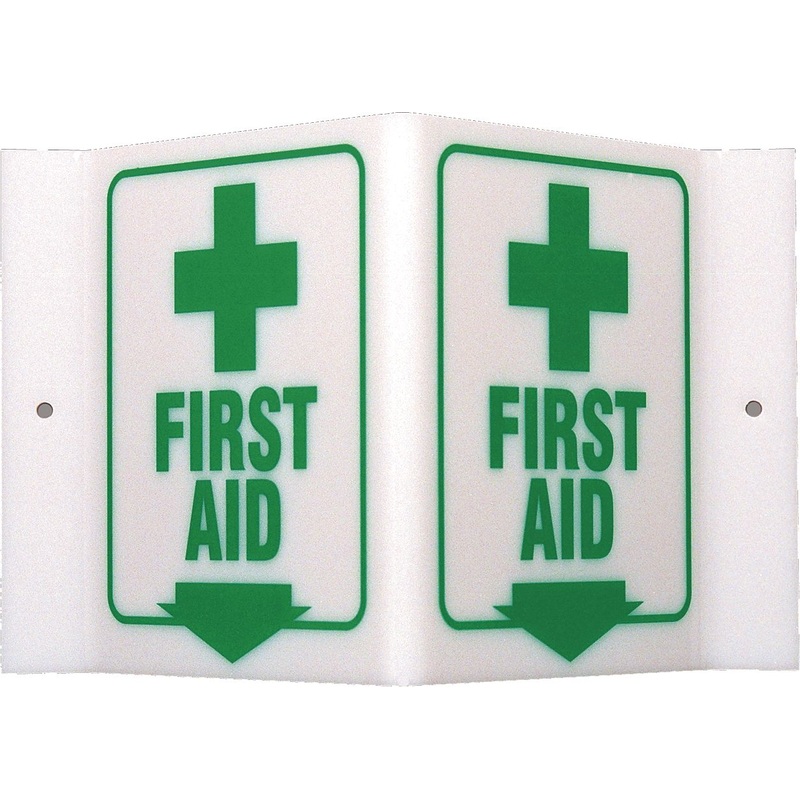 FIRST AID Sign, V-Shaped, Acrylic, 6″ x 9″ x 4′