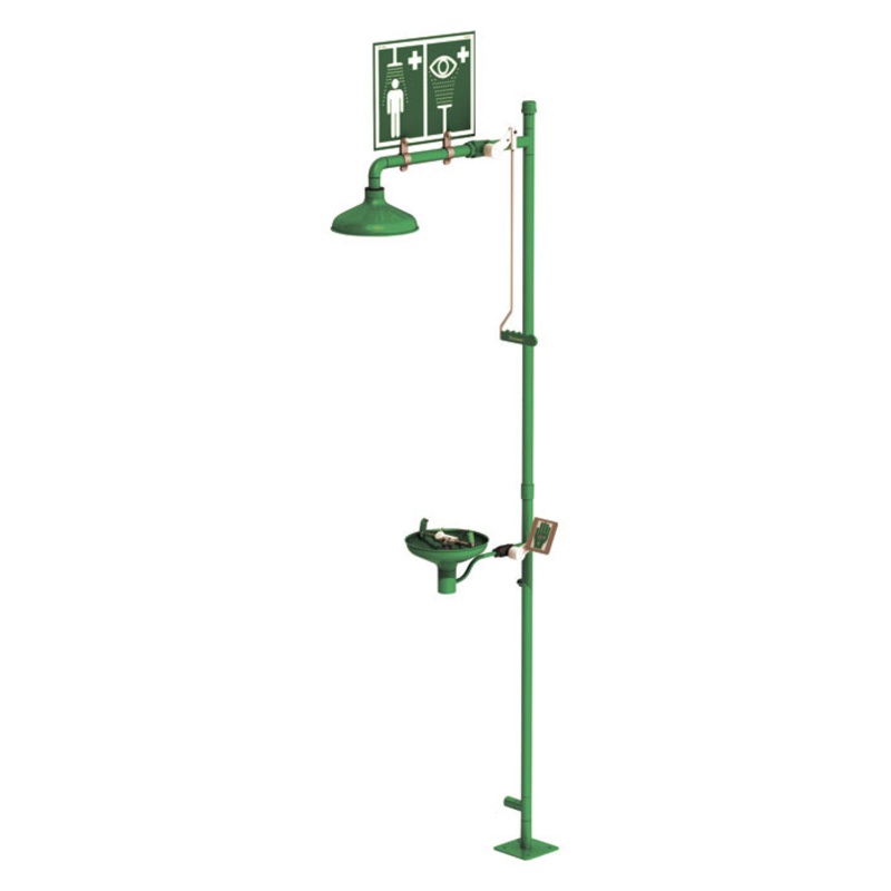 Ideal for laboratories, schools and general light duty indoor use, this floor mounted emergency combination shower is suitable for use in applications that are not subject to the possibility of freezing or overheating.
