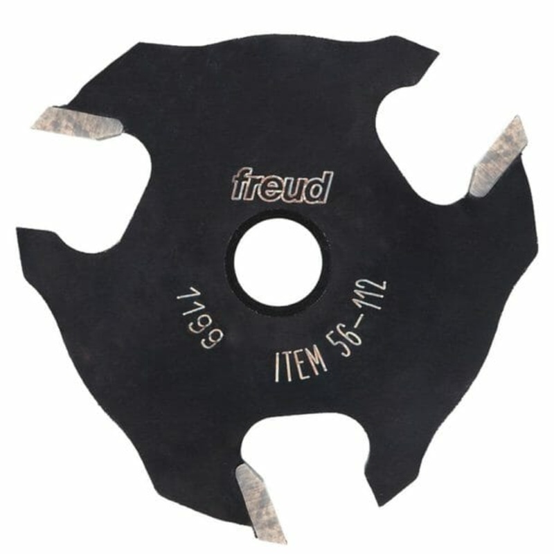 The Freud 56 112 1/4 Slot Three Wing Slotting Cutter should be used with Freuds slotting cutter arbors 60-100 for 1/4 shanks and 60-102. These cutters are a fast, efficient way to rout slots and grooves for T-moldings, spline joints, tongue & groove joints, and many other applications. It should be used with Freuds slotting cutter arbors 60-100 for 1/4 shanks, 60-102 for 1/2 legs, and 62-108 bearing.