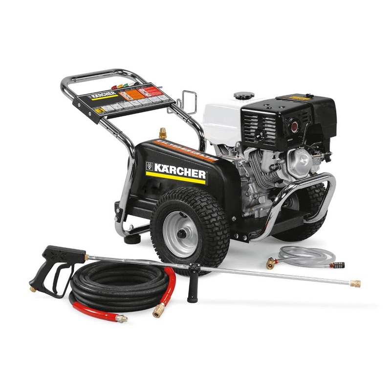 This Karcher belt drive commercial pressure washer with a Honda GX engine and 7-year Karcher pump delivers reliable cold water cleaning power.This cold-water commercial pressure washer is designed with a powder coated steel chassis, chrome handles and fram