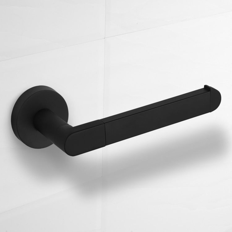 This toilet paper holder is part of the Nameeks General Hotel collection. It is wall mounted and is available in a matte black finish. Made from high quality zinc alloy, this round toilet paper holder is the perfect accessory for the modern or contemporary