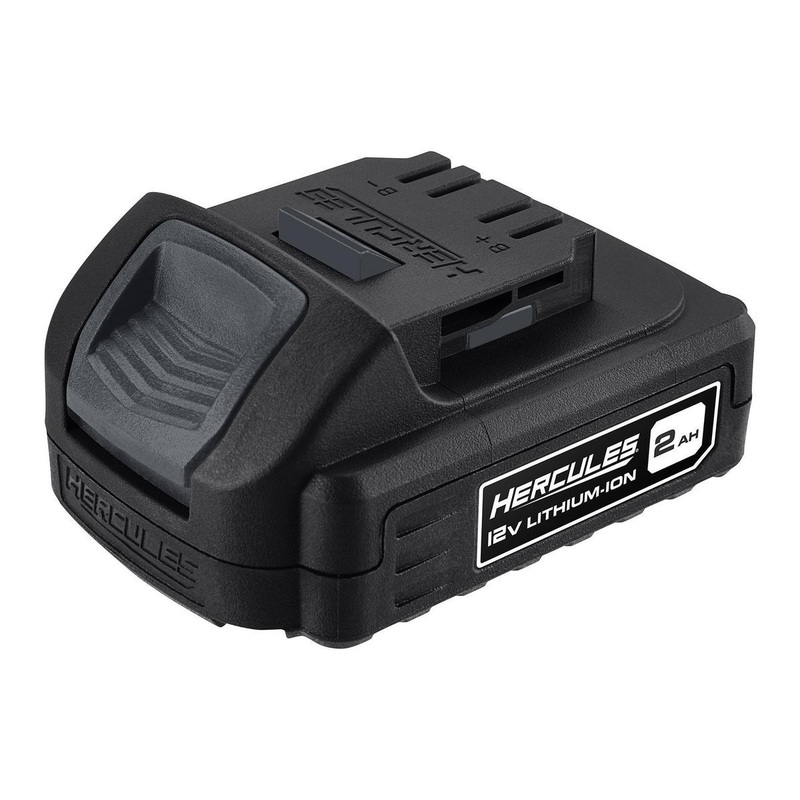 The HERCULES 12V 2 Ah Lithium-Ion Compact Lightweight Battery delivers plenty of power and runtime for the HERCULES 12V platform. The easy-view fuel gauge tells you exactly how much power remains before you need to recharge.Easy-view fuel gauge displays ba