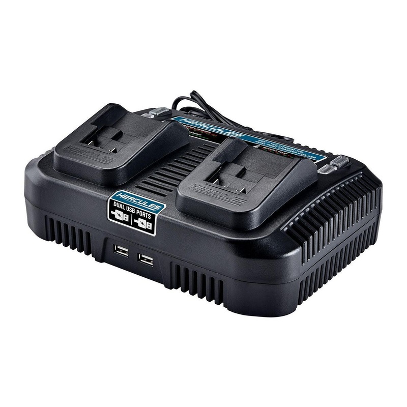 The HERCULES Multi-Voltage Dual-Port Charger with Dual USB eliminates downtime by keeping all your batteries and devices fully charged. All ports can deliver full power at the same time. Built with integrated dual mounting holes for permanent mounting and durable housing to withstand jobsite abuse.