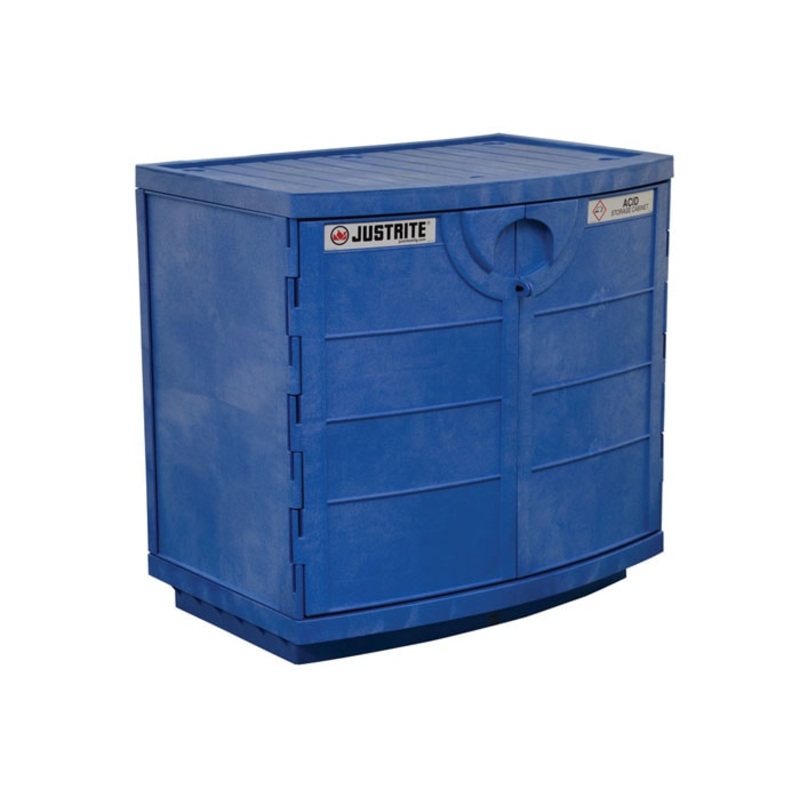 Holds 36, 2.5-Liter Bottles, 1 Shelf, 2 Doors, Manual Close, Corrosives/Acids Plastic Safety Cabinet, Blue – 24180