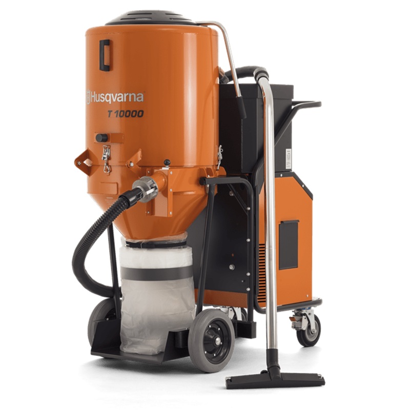 T 10000 is an effective industrial dust extractor to match the highly productive Dual Drive Technology grinding machines Husqvarna PG 820 RC, PG 820, PG 680 RC, PG 680 as well as shavers, shot blasters and saws. Also perfect together with our pre separator