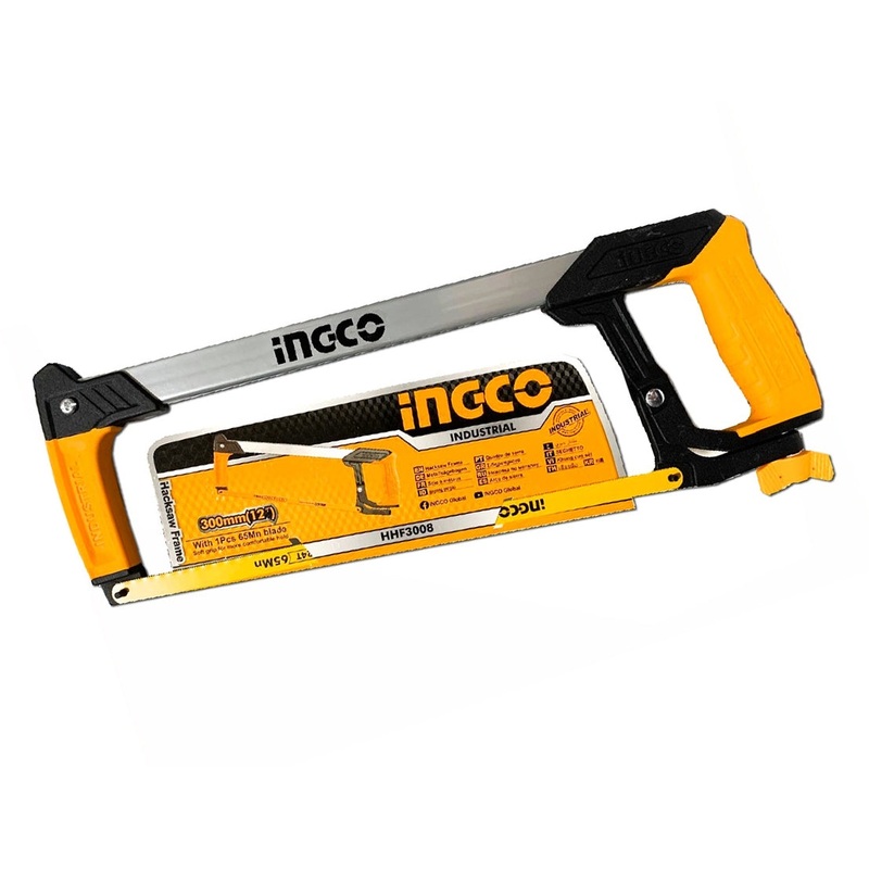 Ingco HHF3008 Hacksaw Frame 12"Size:300mm/12"Heavy duty steel frameAluminum + TPR handle,Strong and ComfortableAdjustable tensionQuick-release blade changing mechanismIncluding 1pcs 65Mn saw blade