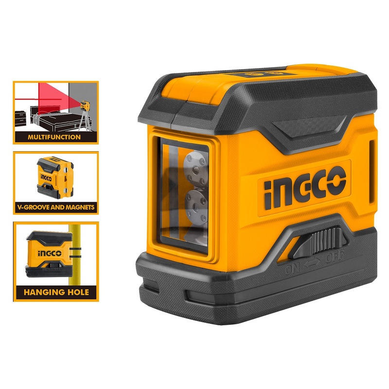 Ingco HLL156508 Line Laser Level (Cross Line) [15 meters]Working Range: 0 15 mLevelling accuracy: 1 5mm at 5m Line accuracy 1 5mm at 5mLevelling time 4sSelf levelling angle 4Laser Type 650nmLaser Class ,, 1mWWith magnetWith hanging holeWith Laser Cross Fun