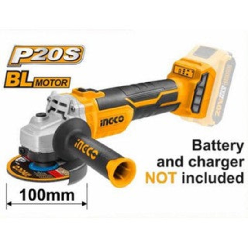 Brushless Motor Voltage:20VNo-load speed:9000/min Disc diameter:100mm Spindle thread:M10Battery and charger not included Packed by color box