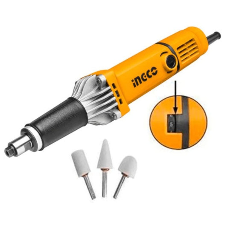 Ingco PDG5501 Die Grinder 550W"Voltage:220-240V 50/60HzInput power:550WNo-load speed:29000rpmCollet size:6mmAluminum gear housingWith 1set extra carbon brushesWith 3pcs mounted pointsPacked by color box"6 Months Limited Warranty