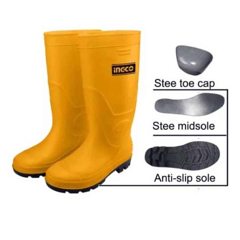 Ingco Rain Boots PVC/ Nitrile with Steel Toe (Bota)Available size: 39 - SSH092S1P.3940 - SSH092S1P.4041 - SSH092S1P.4142 - SSH092S1P.4243 - SSH092S1P.4344 - SSH092S1P.4445 - SSH092S1P.4546 - SSH092S1P.46Specifications:Material: PVC / NitrileProtection for