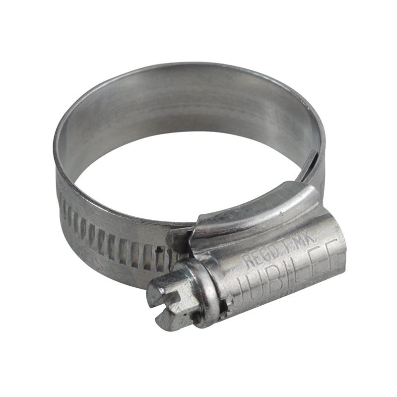 Jubilee clips are Kite marked to BS5315 (1991) and the company is licensed to ISO9001.Made from mild steel, zinc protected and used for fixing flexible rubber hoses, metal tubes etc.Specification:Size: 25 - 35mmSize: 1 - 1 3/8''Screw Head Size: 7mmMild Ste
