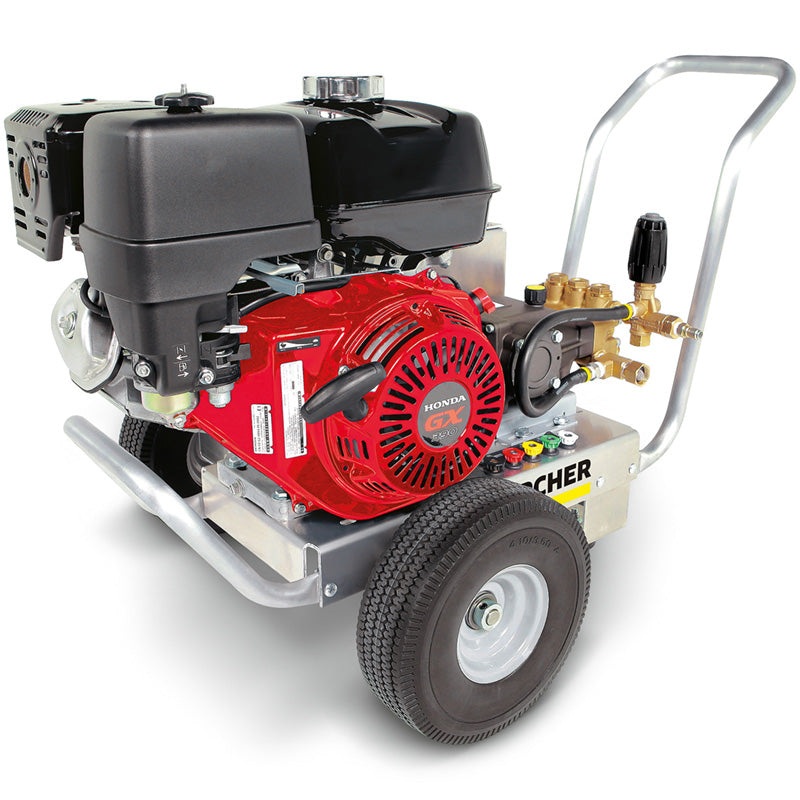 The Karcher HD 5.0/30 GB is a corrosion-resistant, lightweight, and reliable cold water pressure washer.Part of the HD Gas Series, this pressure washer features a Honda engine, a bypass loop for additional pump protection, a 7-year pump warranty, and flat-