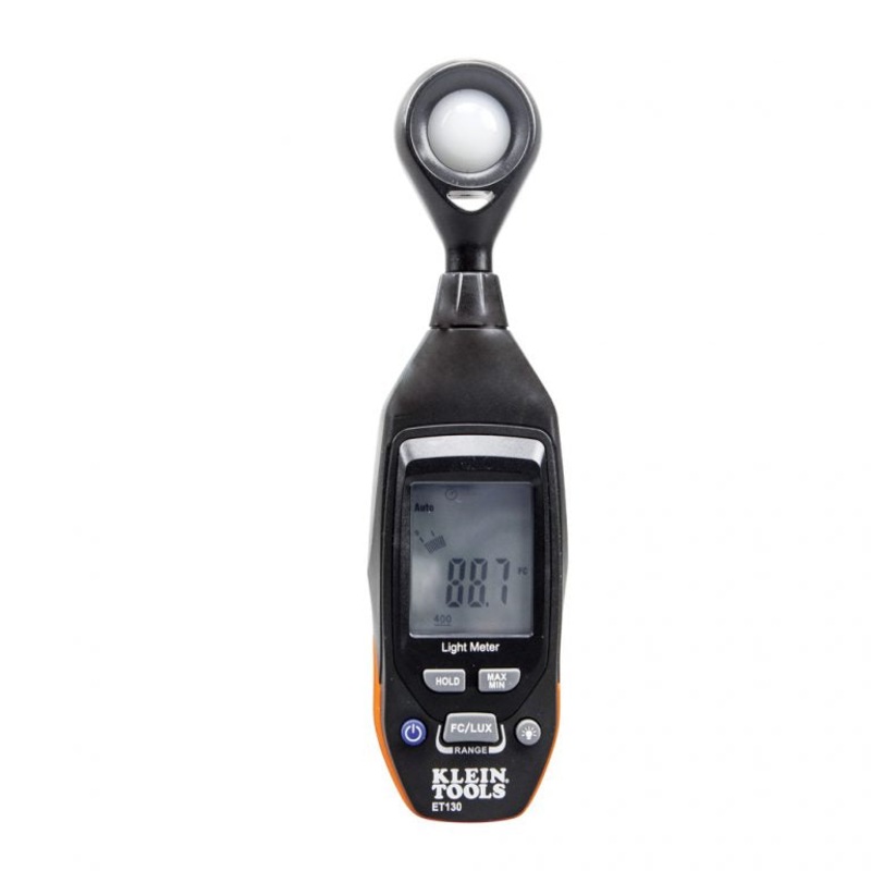 Description:Klein Tools ET130 is an easy-to-use precision light meter that measures illuminance levels in both Foot Candles (FC) and Lux. Backlit LCD display screen with bar graph assists when monitoring light levels and for retrofit projects. Includes cus