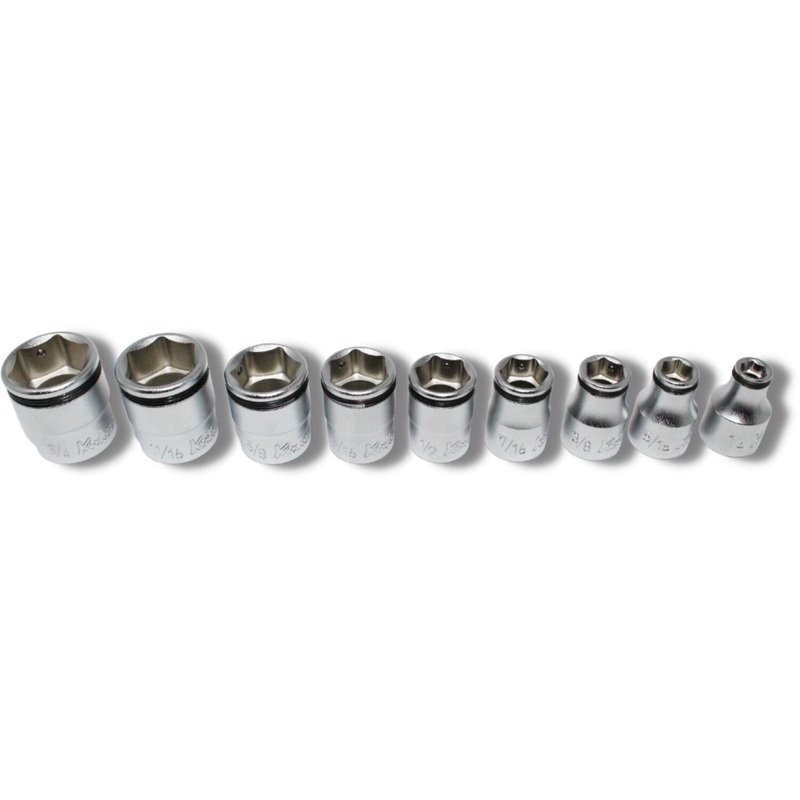 General InformationBrandKo-Ken ToolsProduct TypeSockets SetNumber of Pieces9Country of OriginJapanCalifornia ResidentsProposition 65 WarningPart NumberRS3450A/9Physical CharacteristicsMaterialSteel Weight0.14 kg0.30 lbDetailsWrench TypeSockets set Size1/4, 5/16, 3/8, 7/16, 1/2, 9/16, 5/8, 11/16, 3/4Drive Connector Size3/8 Inch