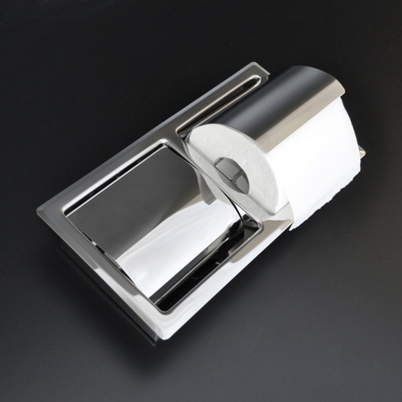 Recessed double toilet paper holder made of stainless steel.W: 10 1/2 D: 4 H: 4 3/4Download :Specification Sheet